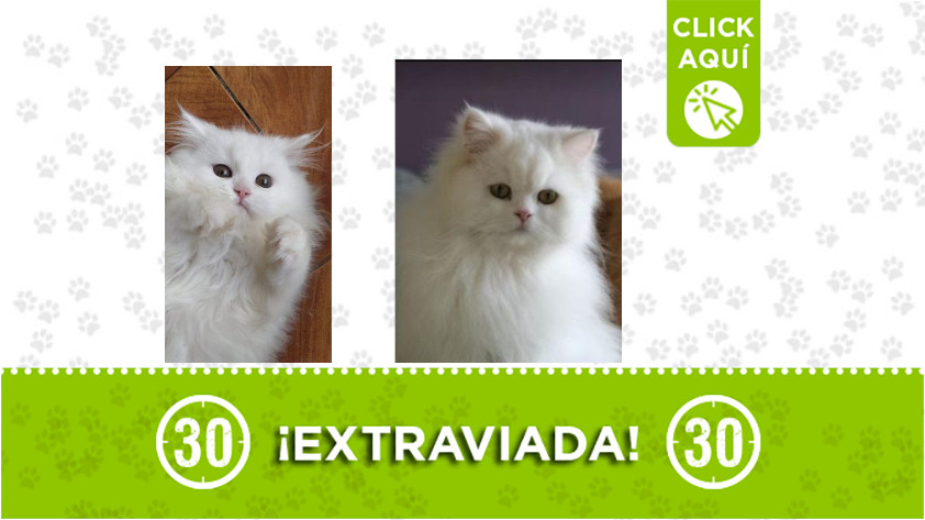 Esta hermosa gata responde la nombre de ‘Vainilla’. Se extravió en el sector de Villa Sofía, en Medellín. Si la reconoce, comuníquese al número 3137062557