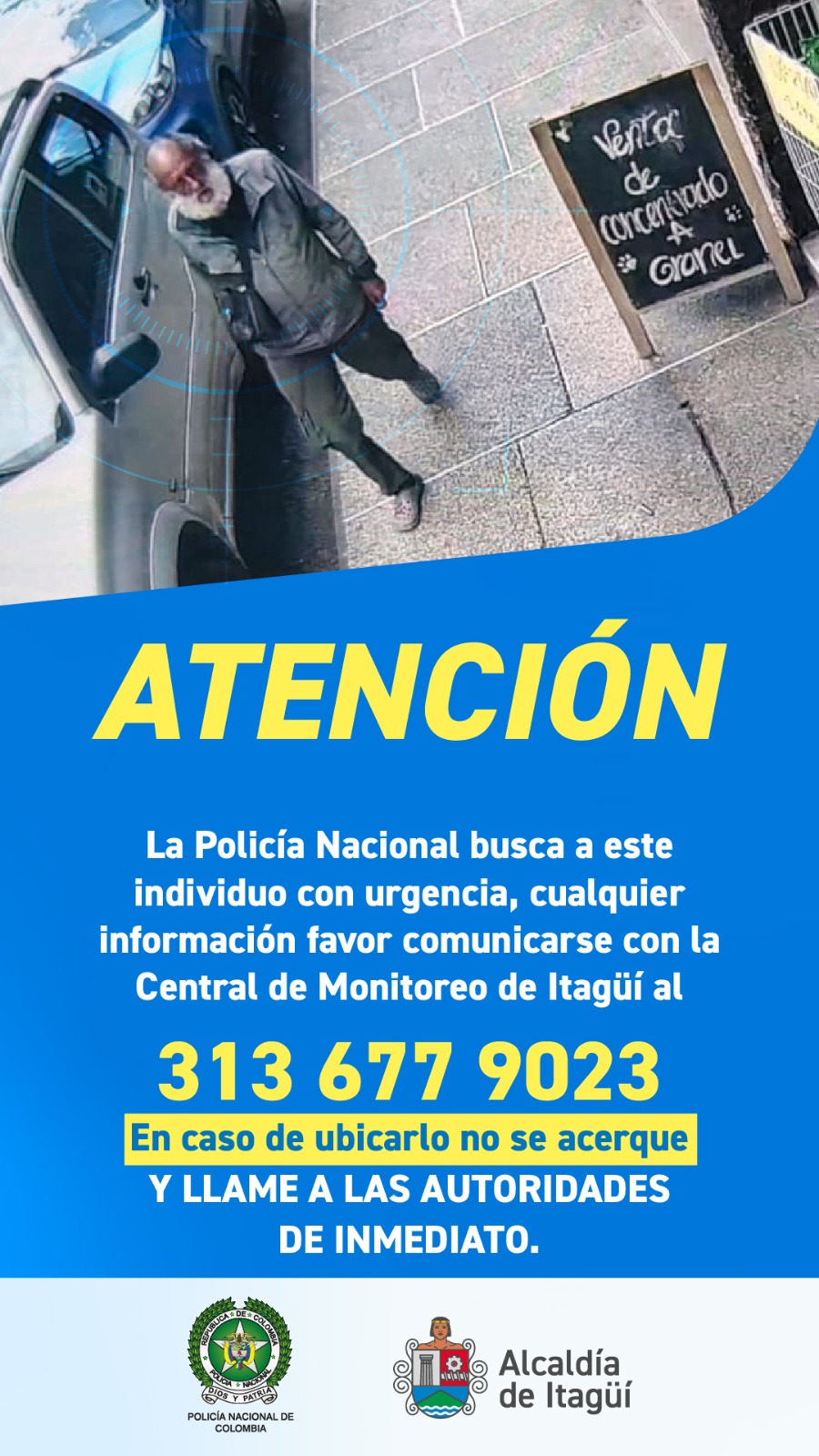 Las autoridades solicitan a cualquier persona que tenga información sobre este sujeto que se comunique con la central de monitoreo al número 3136779023 para ayudar a su pronta captura.