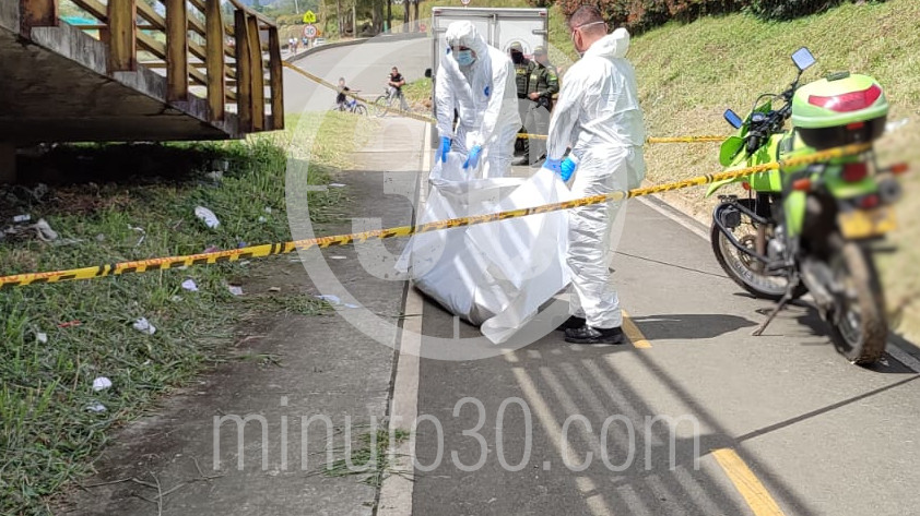 La víctima aún no identificada, de 30 a 35 años de edad aproximadamente, fue hallada debajo de un puente peatonal en la Autopista Norte, sentido sur – norte del municipio de Girardota – Copacabana.