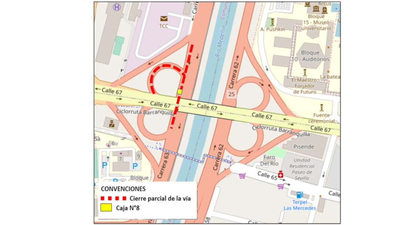 El cierre también incluye la vía ubicada en el costado sur de la calle 67, que conecta con la autopista Sur.