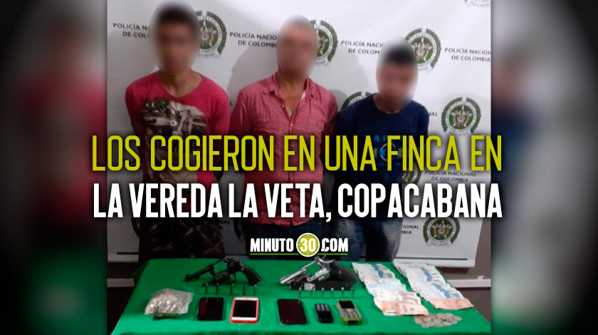 Según detallaron las autoridades, fueron capturados dos hombres de 35 y 53 años de edad, y aprehendido un adolescente de 17 años, en una finca ubicada en la vereda La Veta del municipio de Copacabana, norte del Valle de Aburrá.