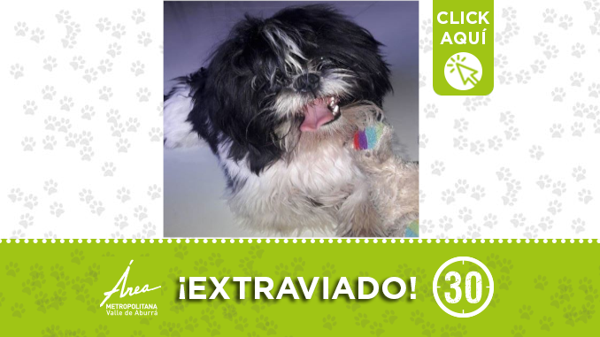 ‘Hachi’ se perdió el pasado 19 de abril en Niquía Camacol, por la iglesia de La Candelaria. Si usted lo ha visto, puede comunicarse al 3045502949. ¡Comparte!