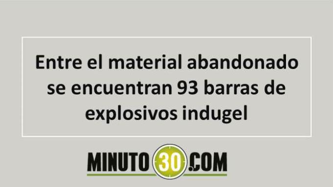 El hechos se registró en la verada potrerito sector La Mina donde se encotró 1 escopeta marca rémington, calibre 16, numeración limada, con cachas en madera color café; con 4 cartucho para la misma; 1 escopeta, con 3 cartuchos para la misma; 93 barras de explosivos indugel, 121 detonadores y 400 metros de mecha lenta.