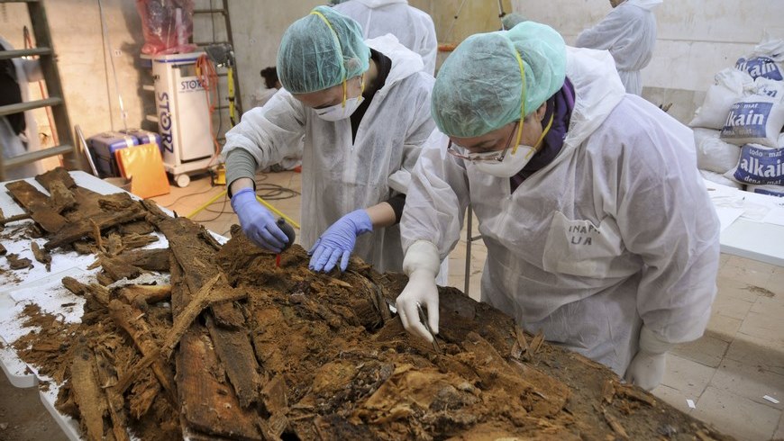 Los restos estaban en el subsuelo, en el conjunto que los investigadores nombraron con el número 32, y aparecieron junto con elementos y ropajes que permitieron datarlos con los del siglo XVII y contrastarlos con la documentación histórica.