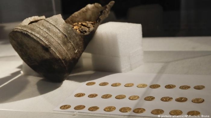 Ánfora con cerca de 300 monedas de oro de la última época del Imperio romano/Tomada de Deutsche Welle