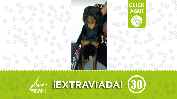 Si tiene alguna información sobre el paradero de esta perrita, por favor comunicarse al número 3143304277