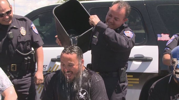 Iniciada a mediados de julio en Boston por el exjugador de béisbol Pete Frates, quien padece esa enfermedad, la campaña es una cadena solidaria en la que los que son desafiados a arrojarse por encima un cubo de agua helada deben donar 10 dólares y plantear el reto a otras tres personas en las redes sociales.