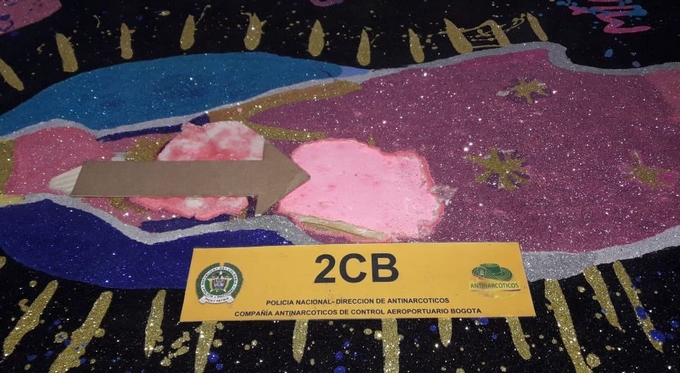 Según el reporte de las autoridades, el envió quedó al descubierto cuando un Policía devoto se detuvo a apreciar la obra de arte hecha en óleo, con una escarcha que brilla a la luz y con un marco de 90 centímetros, al tocar la pintura para darle la despedida a la Virgen María un polvo rosado se desprendió, revelando su verdadero contenido, 10.300 gramos de la droga conocida como 2CB.