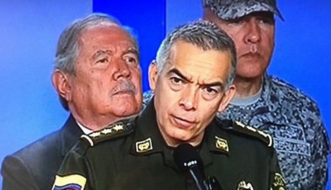 El Director General de la Policía Nacional de Colombia, general Oscar Atehortúa, habló en rueda de prensa conjunta de las autoridades del país para entregar el parte de los fallecidos y heridos tras el atentado terrorista en la escuela de cadetes General Santander de Bogotá.