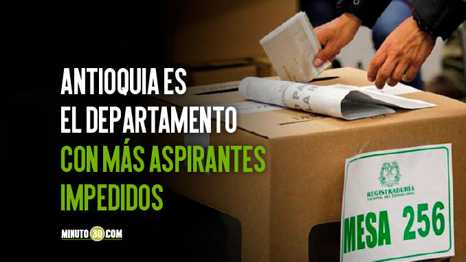Los departamentos en los que se registraron mayor número de aspirantes impedidos fueron Antioquia (10.8%), Cundinamarca (10.4%), Valle del Cauca (8.2%), Boyacá (7.5%) y Tolima (6.9%).