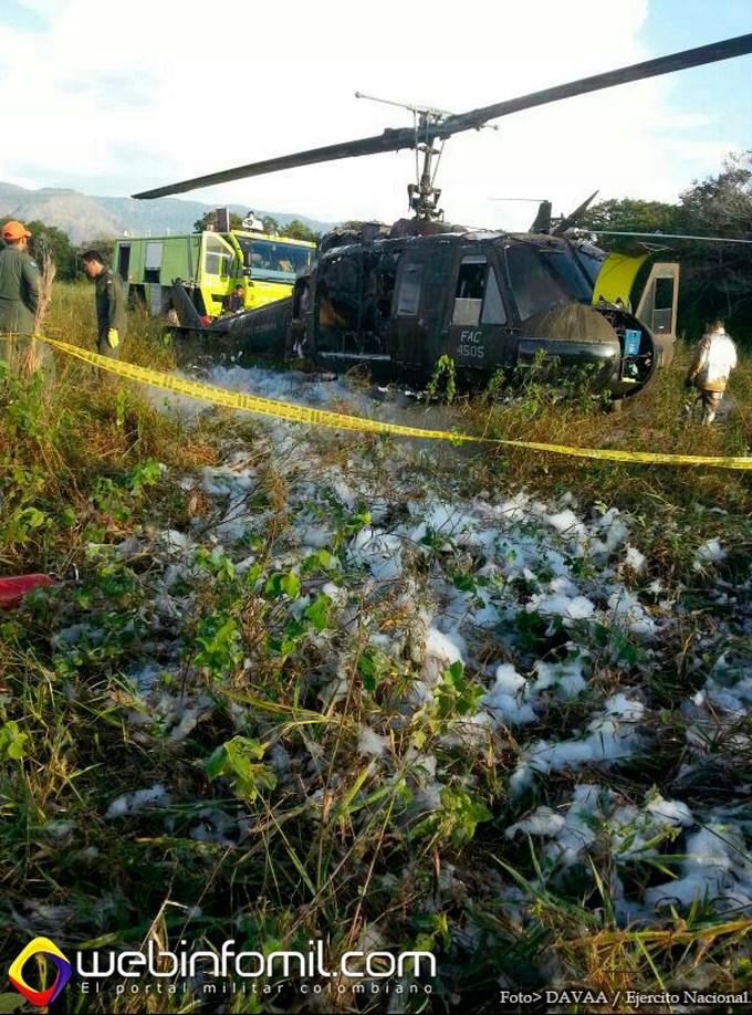 La rápida acción de los uniformados de la brigada #25 de Aviación del Ejército Nacional, adscrita a la División de Aviación Asalto Aéreo, permitió controlar la situación a pesar de las adversidades del terreno y de la cortina de humo que cubría la aeronave.