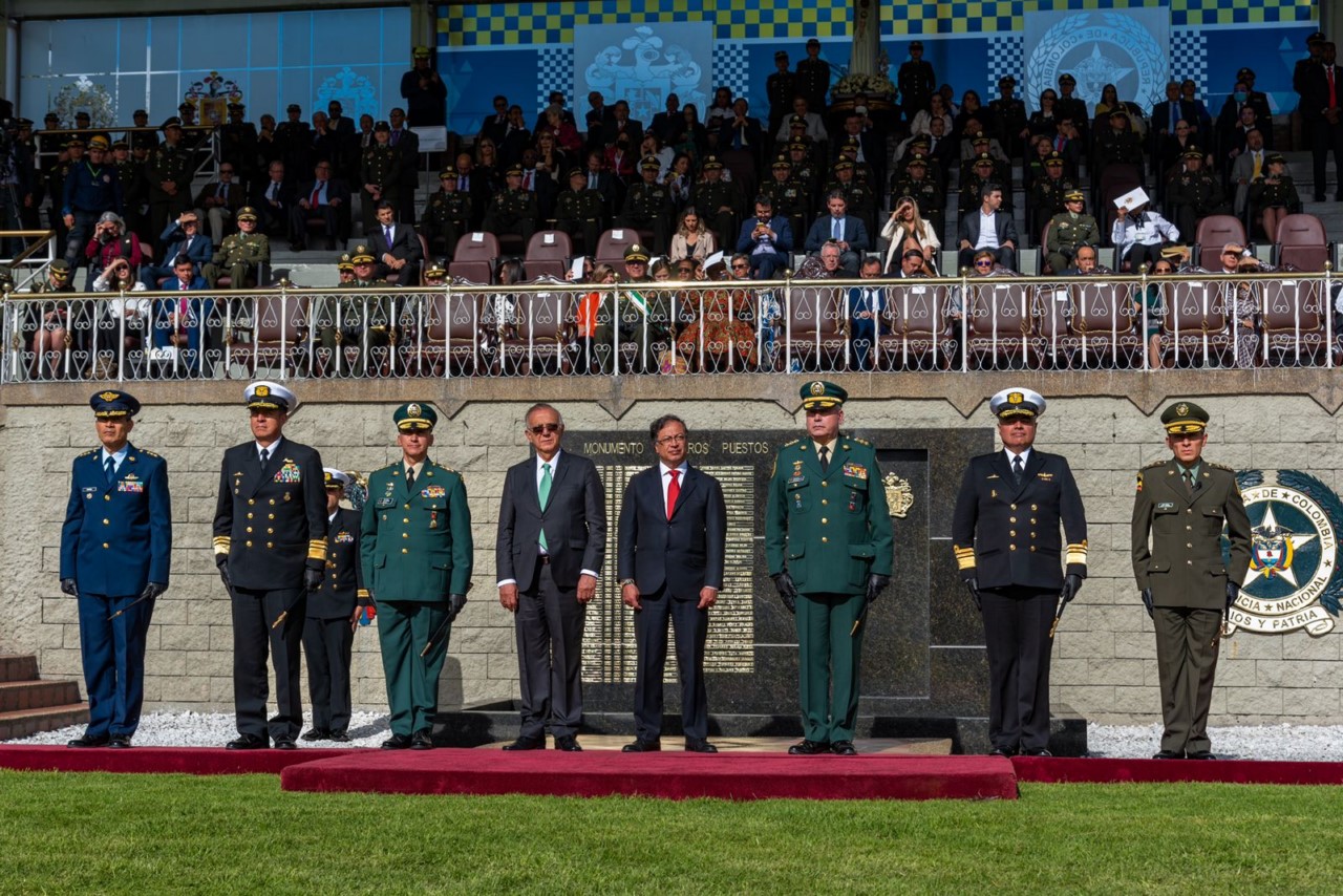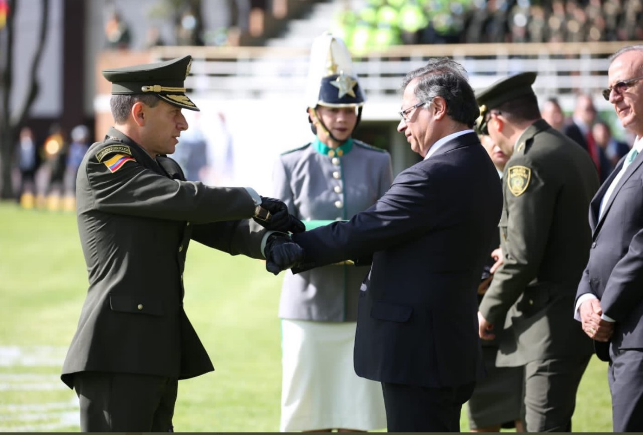 “El presidente Gustavo Petro lidera la ceremonia de transmisión de mando del Mayor General Henry Armando Sanabria Cely, como Director General de la Policía Colombia, quien será uno de los responsables de la puesta en marcha de la política de seguridad humana”, afirmaron en la cuenta de Twitter de la Presidencia de la Republica.
