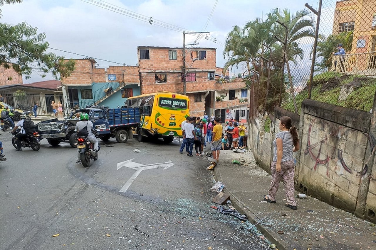 En la mañana de este jueves 7 de octubre se presentó un accidente de tránsito entre un camión y un bus, de acuerdo con lectores de Minutos30, se presentaron varios heridos en el barrio Enciso, ubicado en la comuna 8 de Medellín.