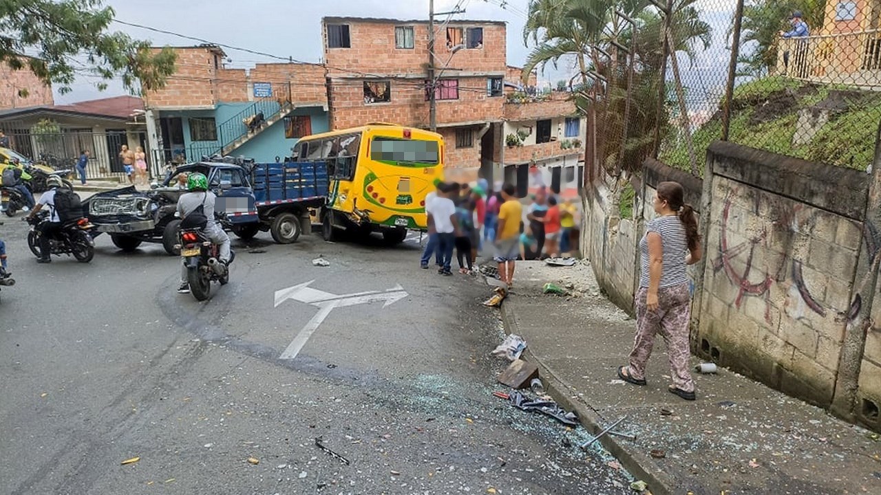 En la mañana de este jueves 7 de octubre se presentó un accidente de tránsito entre un camión y un bus, de acuerdo con lectores de Minutos30, se presentaron varios heridos en el barrio Enciso, ubicado en la comuna 8 de Medellín.