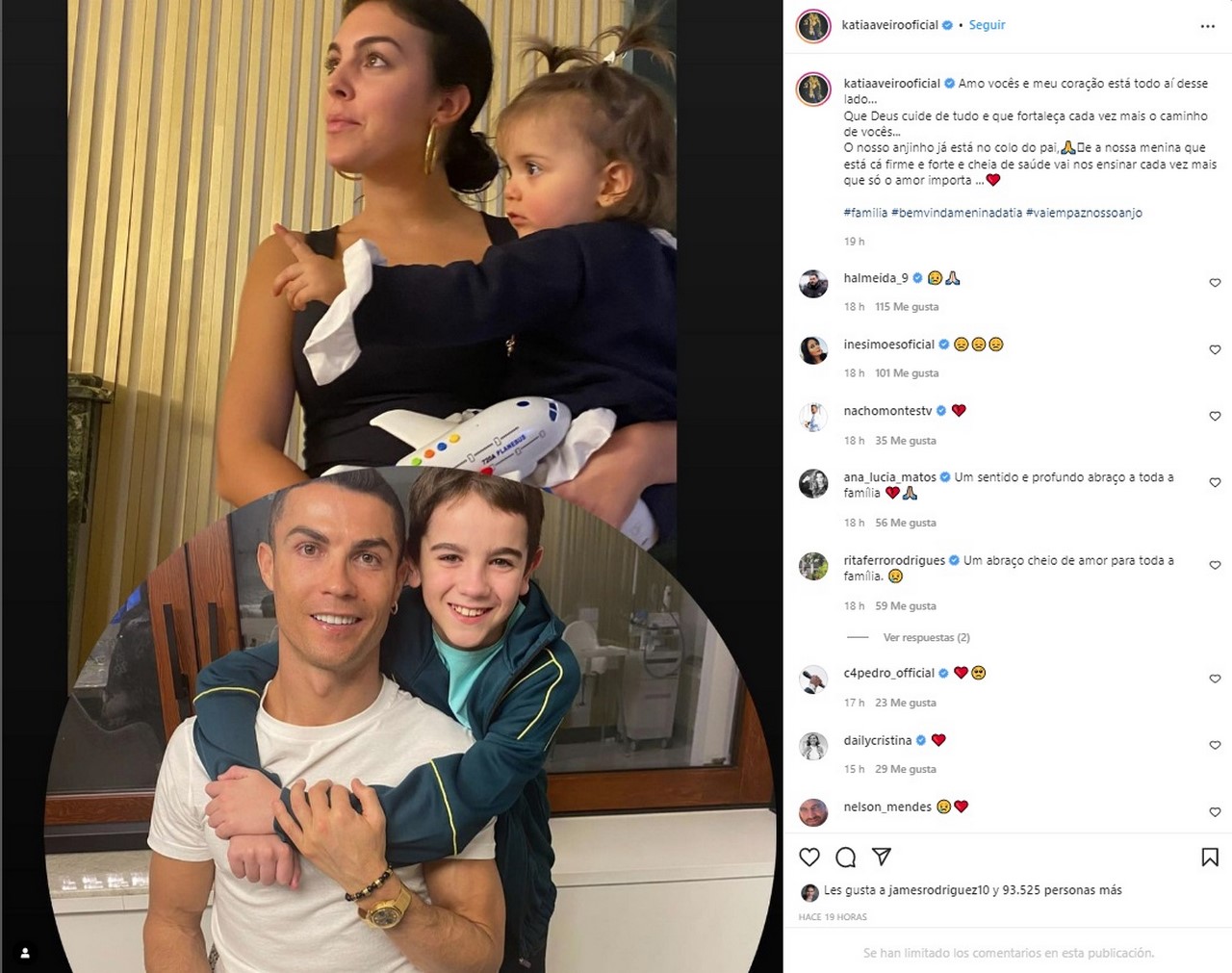 Katia Aveiro, hermana de Cristiano Ronaldo, ha publicado un mensaje en su cuenta de Instagram en apoyo al mal momento por el que pasa Cristiano y Georgina Rodríguez, en el que también se conoce el estado de su sobrina recién nacida.