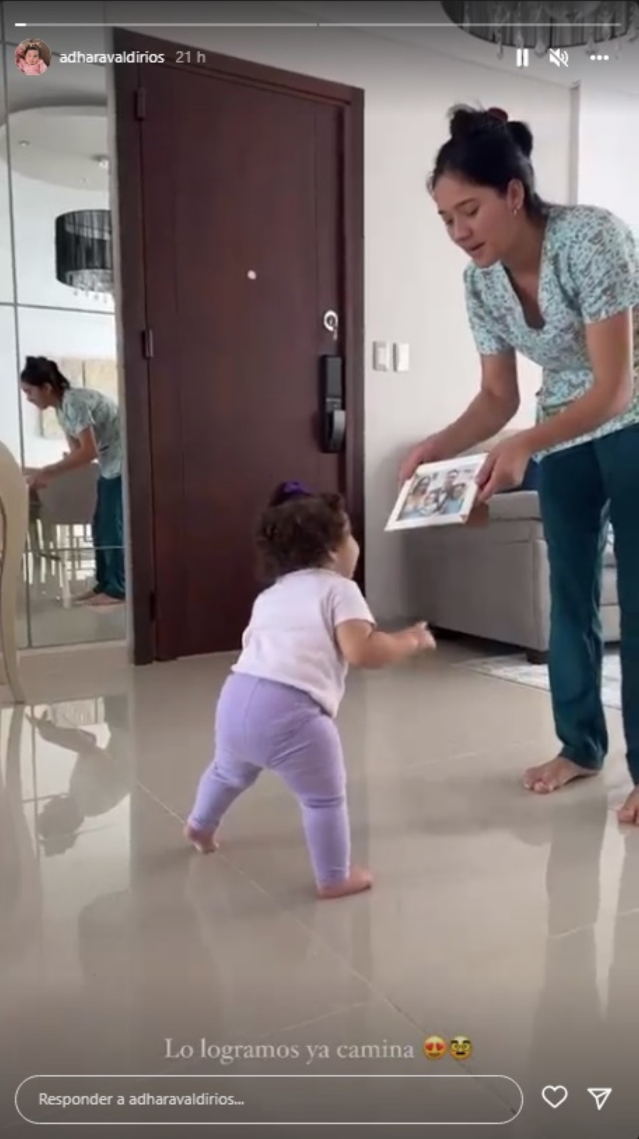 A través de la estados de Instagram de Adhara mostraron como la hija menor de Andrea Valdiri caminaba y llamaba a Felipe Saruma como papá.