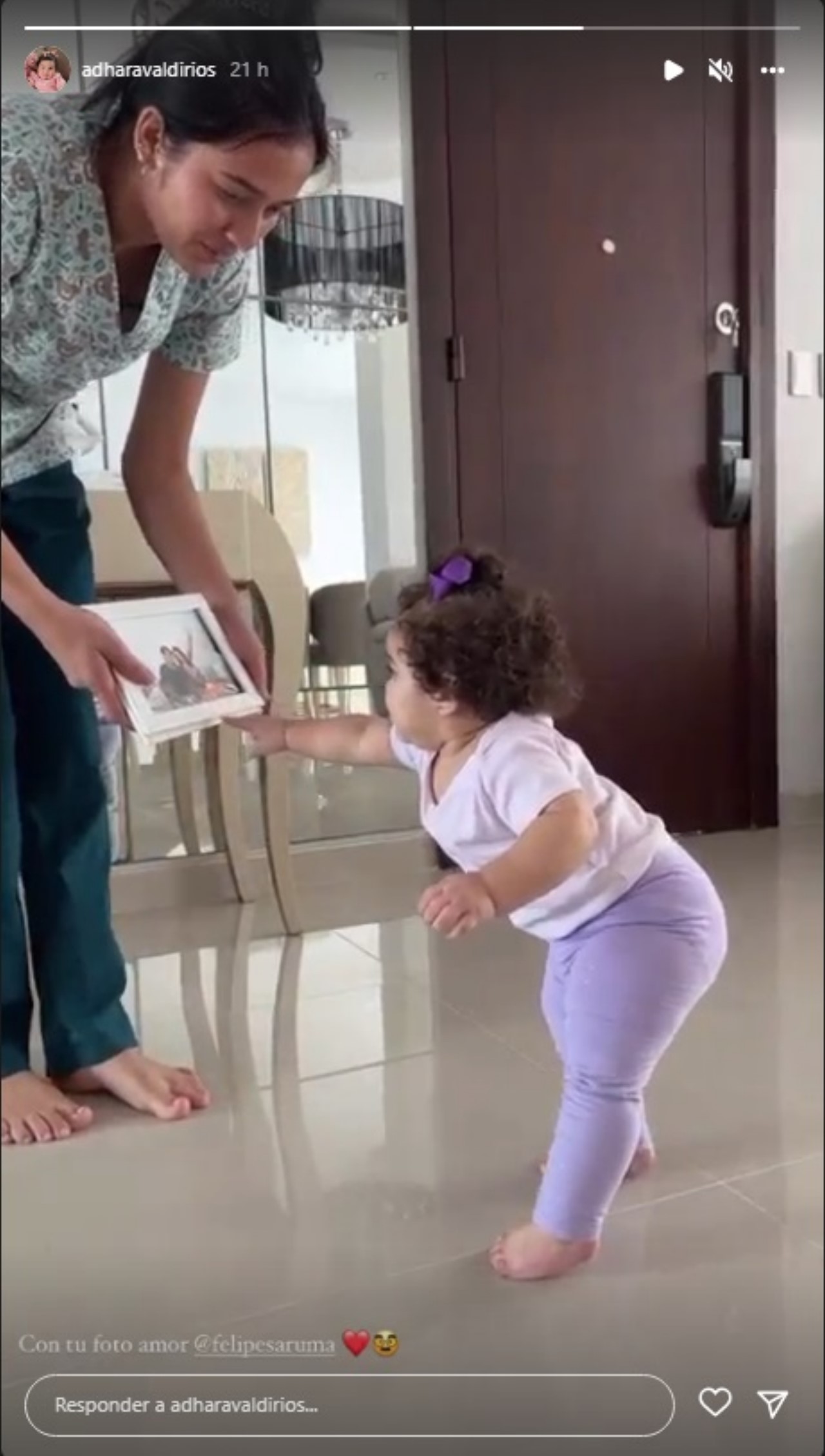 Los videos fueron replicados por otra cuenta de Instagram que dejan ver como la pequeña está de pie y señala a Felipe en unas fotografías. Cuando le preguntan quien es él, Adhara dice “Papá”.