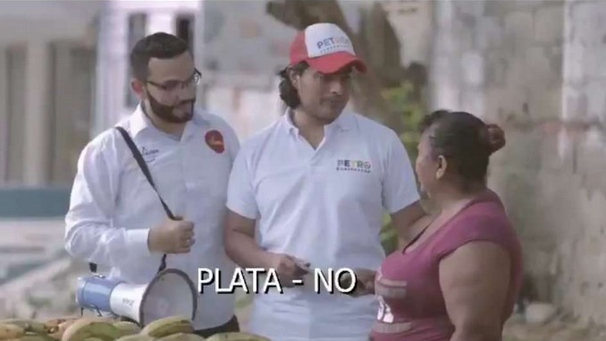 Con un método de metáfora para invitar a la ciudadanía a que no venda los votos en las próximas elecciones, Petro publicó el video en el que sale con una carreta a ‘venderle’ plátano (plata-no) a las personas proponiendo ‘soluciones’.