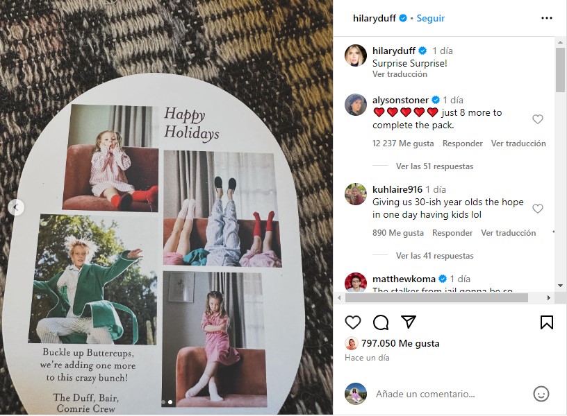 El dulce anuncio se dio con una preciosa foto la cuenta de Instagram de Hilary Duff, junto a sus otros tres hijos.