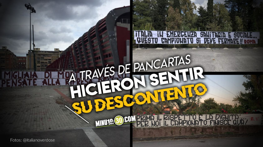 “Miles de muertes en todas las ciudades, pero piensan en la reanudación de la Serie A”, lamentan en una de las pancartas.