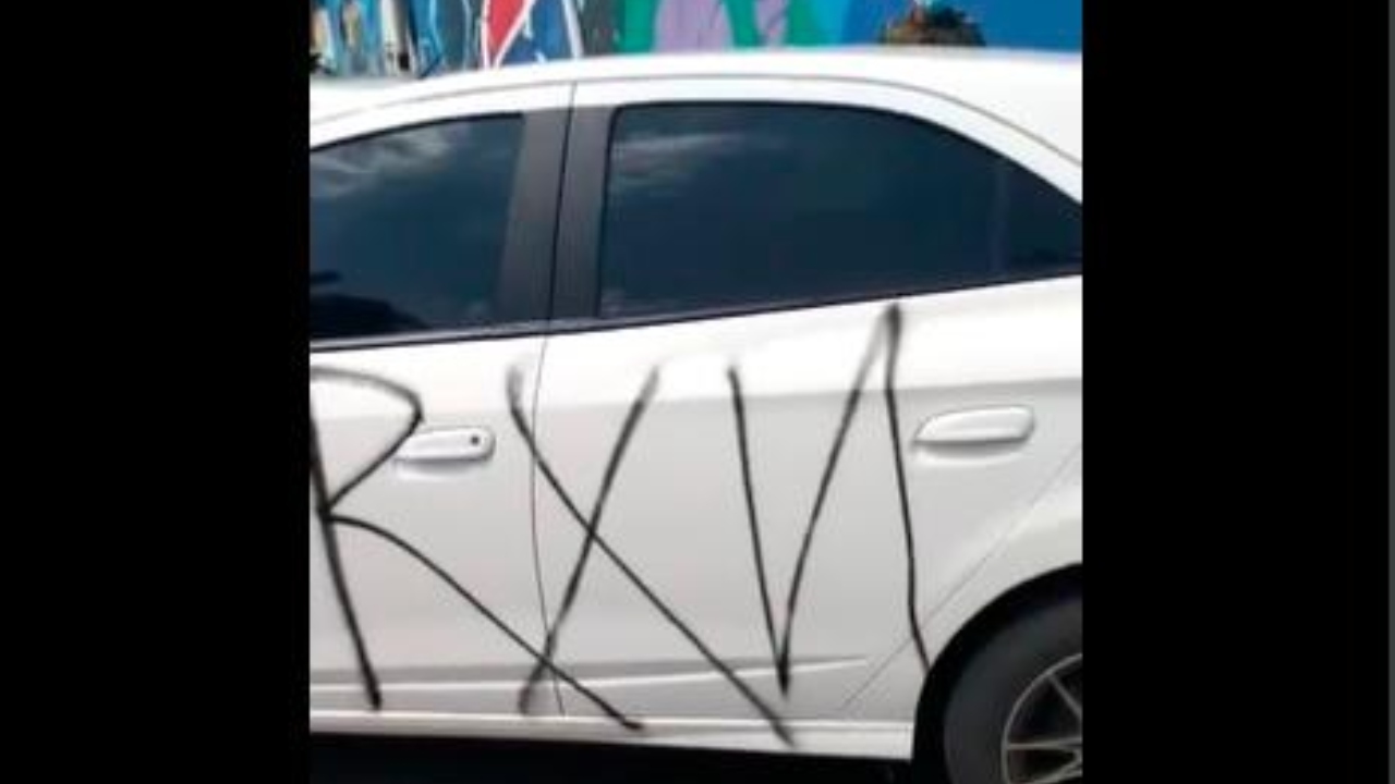 En un video difundido en redes sociales se puede apreciar cómo quedó el vehículo, que fue rayado por vándalos, hinchas del ‘Equipo del Pueblo’, con mensajes alusivos a la barra.