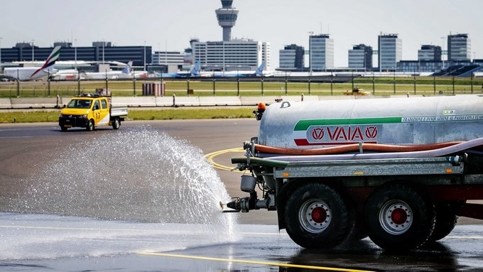 Asimismo, las autoridades del aeropuerto de Schiphol de Ámsterdam están rociando el asfalto con agua fría para evitar distorsiones o deformaciones del suelo al paso de los aviones, y por temor a que la temperatura de las pistas aumente a 50 grados por estar directamente expuestas al sol.