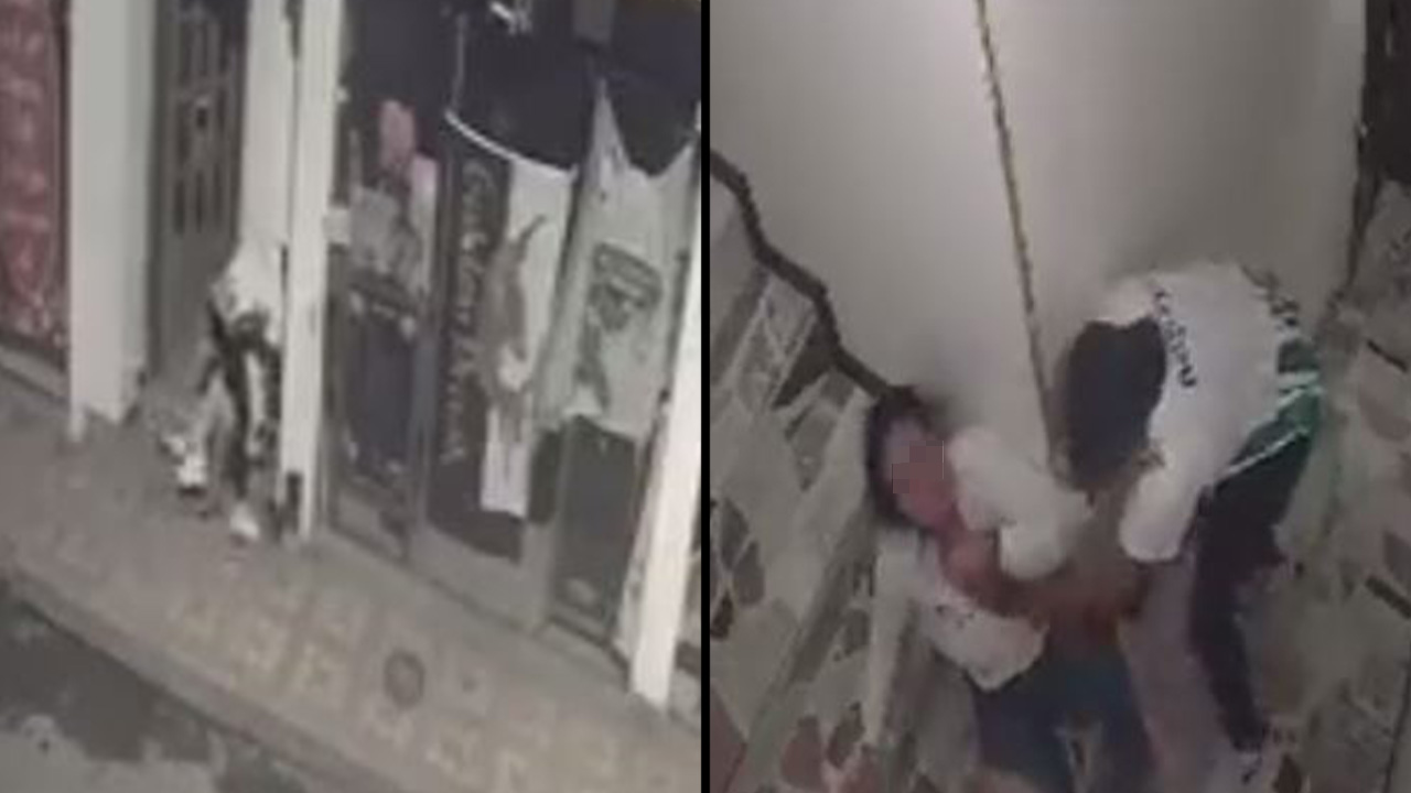 El hombre intercambió algunas palabras con la mujer; para luego tomarla del cuello de la camisa y arrastrarla por las escaleras, dejándola en la puerta de la entrada del edificio.