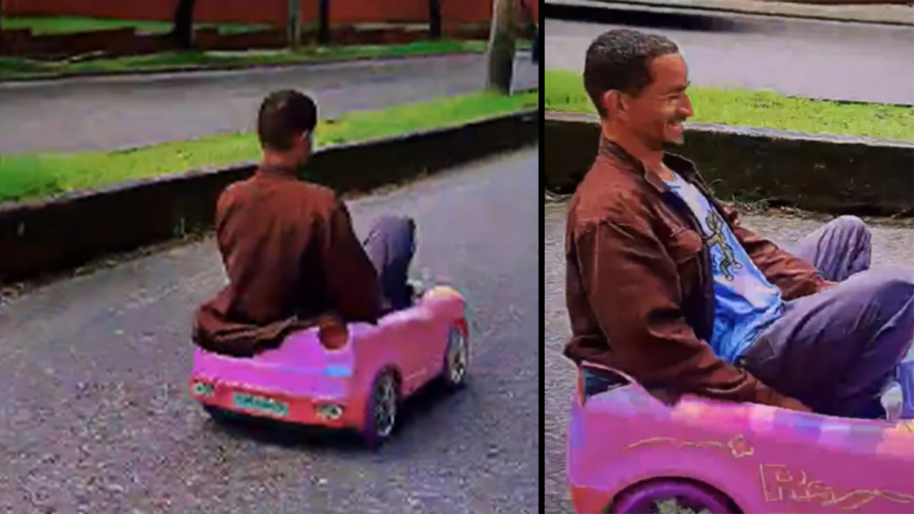 En redes sociales se viralizó un video en donde se ve a un señor muy ‘pinchado’ conduciendo en la carretera Quinta, Ibagué, en un carrito de juguete de Barbie.