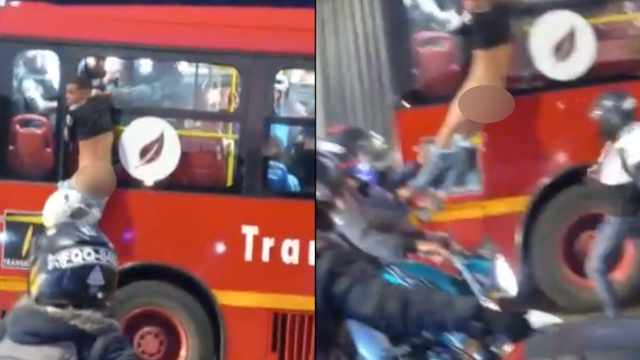 El suceso ocurrió en la avenida Caracas, en donde un ladrón intentó robarle a un pasajero del Transmilenio su celular, pero terminó colgado de la ventana.