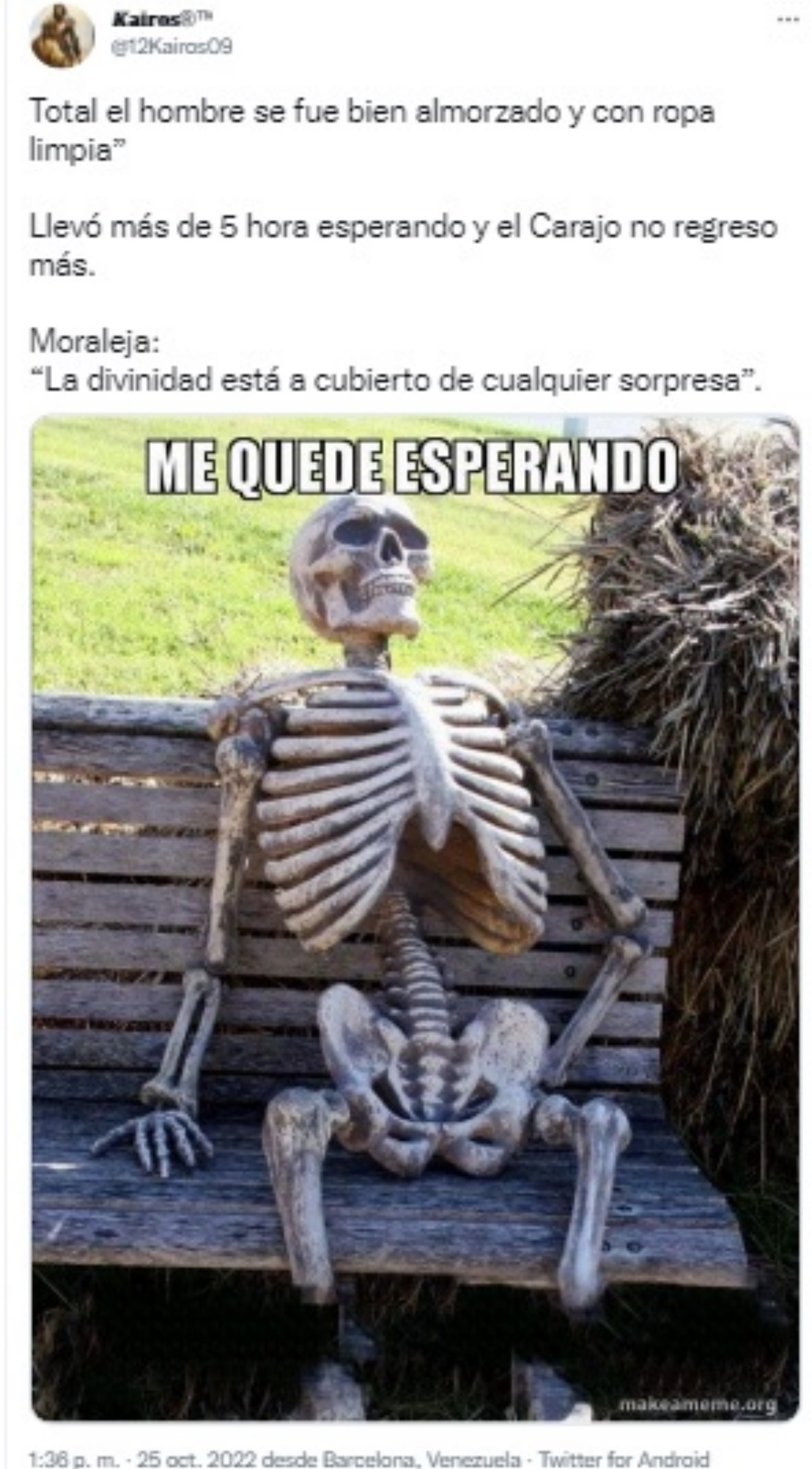 Por medio de su cuenta de Twitter, Kairos expresó: “vendía una lavadora con centrifugado y un ‘man’ llamado Jorge Lozano me mandó mensaje que quería probarla, bueno, llegó con un cesto de ropa me preguntó que si podía lavar la ropa y secarla”.