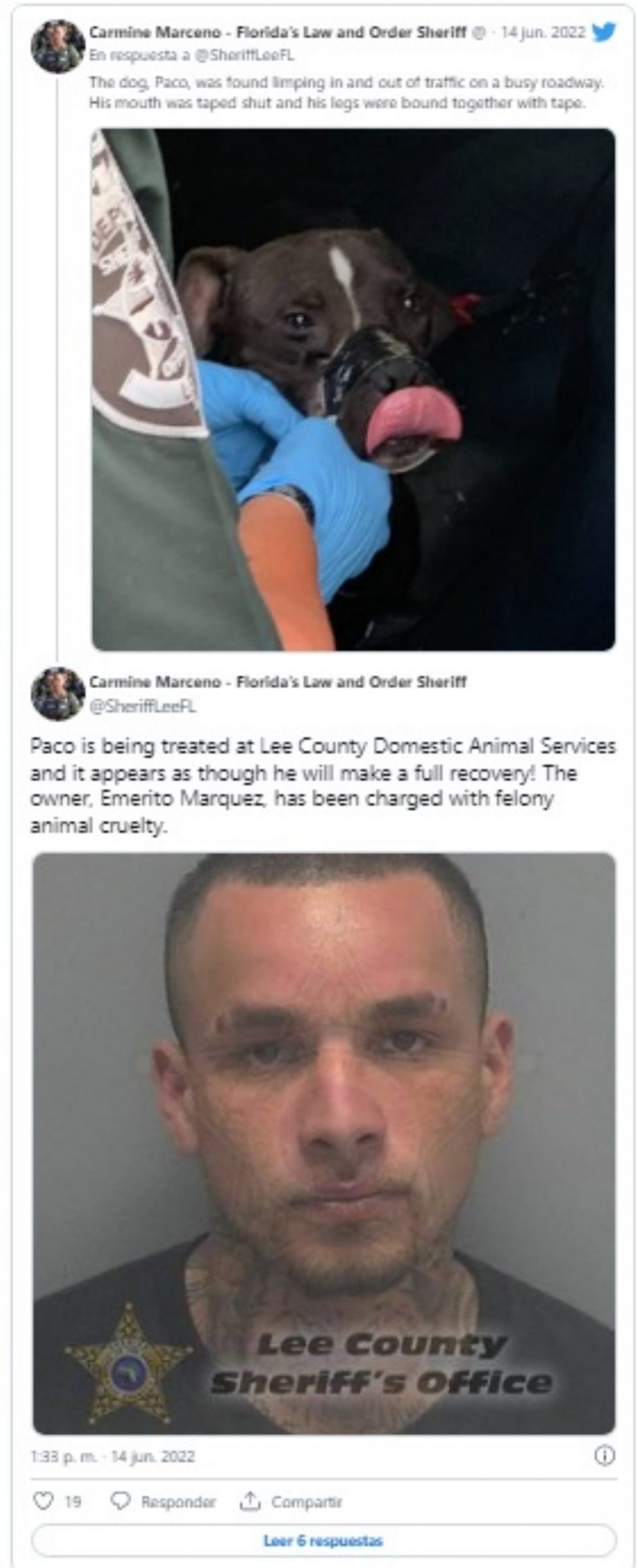 Las autoridades en Florida, Estados Unidos, arrestaron a un joven luego de que hallaron un perrito con el hocico y las patas amarradas con cinta adhesiva. El perro fue abandonado en una carretera muy transitada de North Fort Myers, pero las autoridades lo encontraron solo cojeando cerca de una gasolinera. “Esta persona no tiene sangre […]