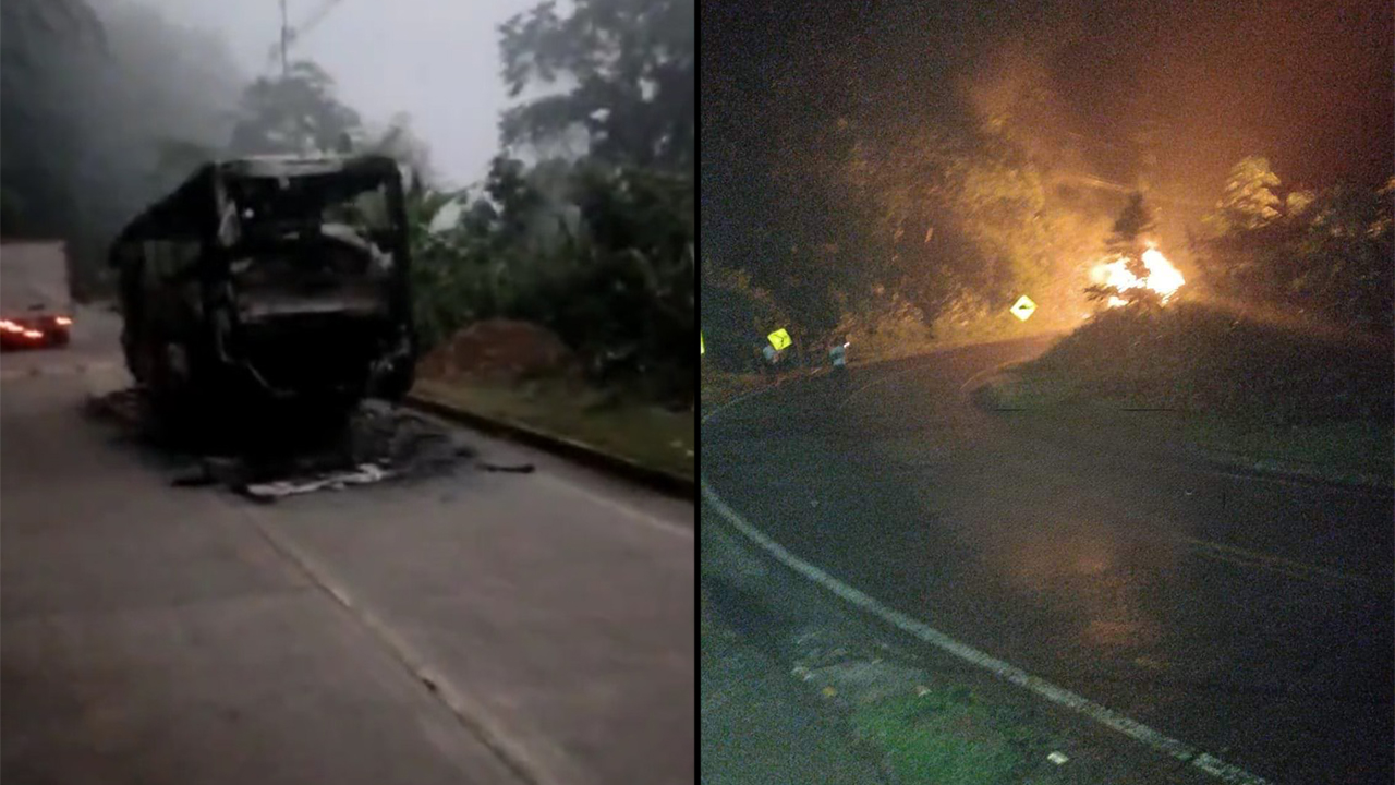 Un bus que cubría la ruta desde Medellín hacia Quibdó en el Chocó fue quemado.