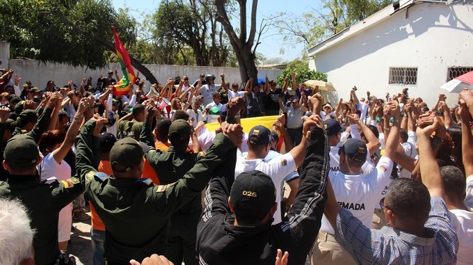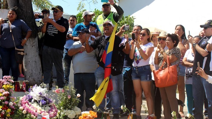 Al mismo tiempo que transcurría la caravana de apoyo, en la Escuela de Policía Antonio Nariño se llevaban a cabo las honras fúnebres de los fallecidos ayer, los patrulleros Freddys Echeverría Orozco, Yosimar Márquez Navarro, Freddy López Gutiérrez, Anderson René Cano Arteta y Yamil Rada Muñoz.