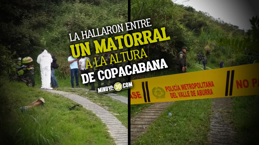 El cuerpo fue encontrado sobre unos matorrales a un costado de unos rieles, a muy pocos metros de la autopista, a la altura de la vereda Fontidueño del municipio de Copacabana, Norte del Valle de Aburrá.