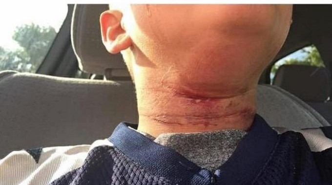La mamá del niño denunció el hecho en redes sociales, donde publicó una imagen del daño, “Mi hijo está siendo trasladado a Dartmouth después de que un niño de 14 años decidió colgarlo de un árbol”.