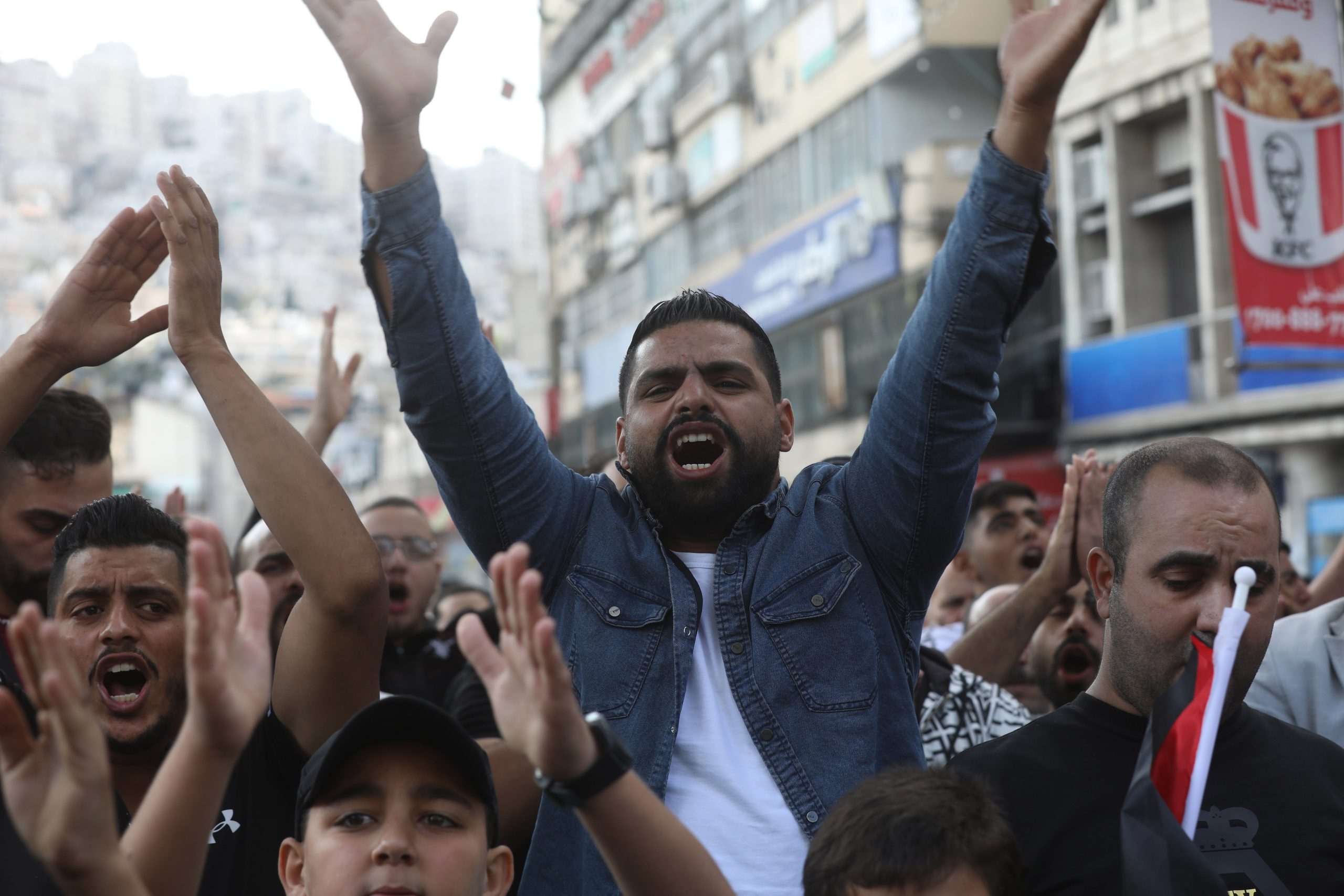 Entre vídeos difundidos por redes se vio también a cientos de personas protestando con banderas de Hamás en lugares como Hebrón, mientras que en otros metrajes en Cisjordania hay manifestantes que exigen el derrocamiento del presidente palestino, Mahmud Abás.