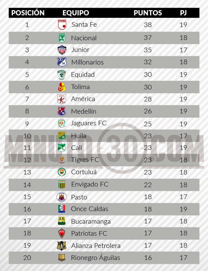 El representativo huilense aún puede llegar 32 unidades en el escalafón, puntaje con el que incluso sobrepasaría a La Equidad y a Deportes Tolima, en caso de que ellos pierdan en la vigésima y última fecha de la primera fase de la Liga Águila II-2017.