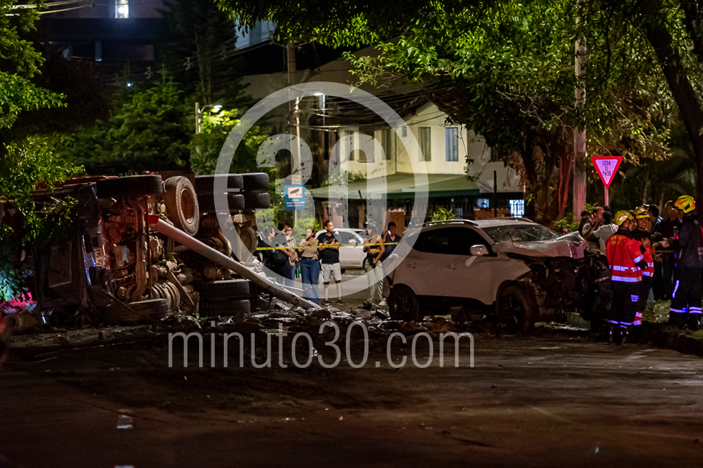 Fue fulminante el accidente de tránsito registrado a las 8:00 de la noche en el barrio Los Colores de Medellín, una volqueta se quedó sin frenos y colisionó con cuatro motocicletas y 7 automóviles, en el hecho, cuatro personas perdieron la vida.