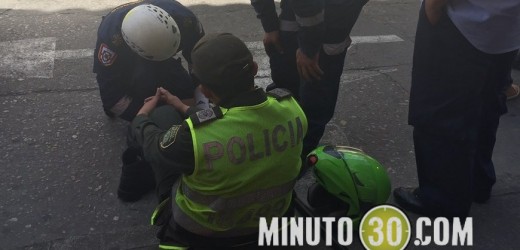 El incidente de tránsito se registró a una cuadra del parque principal del municipio de Rionegro. Al parecer, los uniformados no se percataron de la presencia del carro Reanult Twingo, que los embistió provocando su caída.