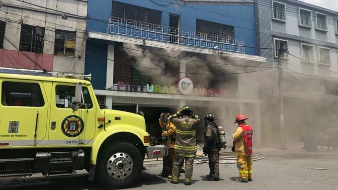 Un voraz incendio acompañado de explosiones se registró el pasado martes 24 de abril en un almacén de pinturas ubicado en la carrera 48 con 43, en pleno centro de Medellín.