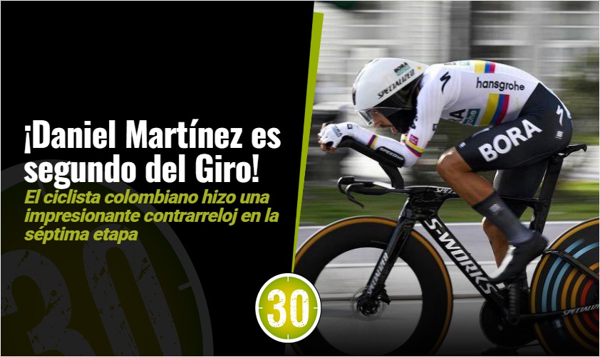Resumen: Daniel Martínez sube al segundo puesto del Giro de Italia tras una impresionante contrarreloj El ciclista colombiano brilló en la séptima etapa, logrando un gran tiempo que lo coloca a solo 2 minutos y 36 segundos del líder, Tadej Pogacar. Martínez se convierte así en el mejor colombiano en la carrera y en la esperanza de un podio para el país. Einer Rubio y Esteban Chaves salen del top 10, mientras que Nairo Quintana se mantiene en el puesto 34. La carrera continúa exigente y Martínez buscará seguir recortando diferencias en las próximas etapas.