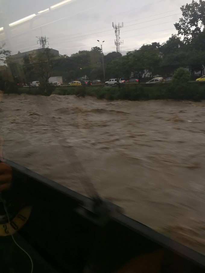 A punto de desbordarse, así captaron ciudadanos el caudal del río Medellín esta tarde de martes.