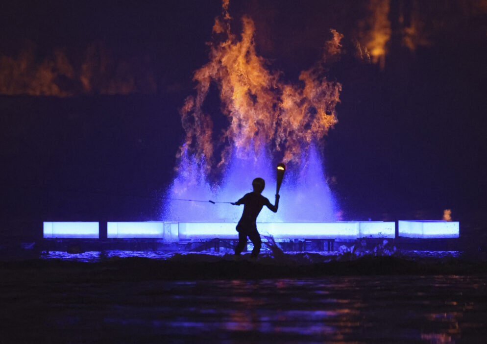 El broche de oro de la noche fue el encendido del pebetero, un momento que por primera vez en la historia de los Juegos Mundiales fue precedido por un relevo de antorcha, en el que participaron alrededor de 120 portadores.