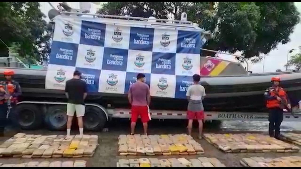 El jefe de estado mayor de la Fuerza de Tarea Contra El Narcotráfico No.72 “Poseidón”, el teniente coronel Lincoln Jaimes, dijo que efectivos de la Armada “interceptaron una embarcación tripulada por tres sujetos extranjeros que transportaban 96 costales de marihuana” que al parecer tenían como destino Centroamérica.