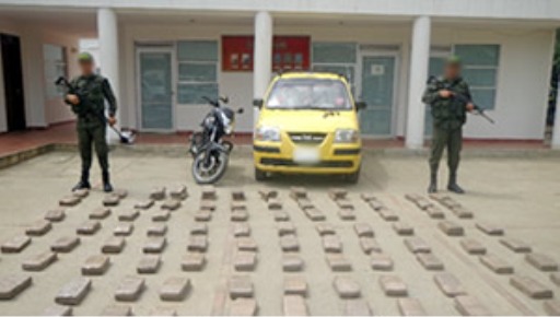El vehículo se trasladaba desde una zona rural de Santander hacia el norte del departamento. Los retenidos y la sustancia alucinógena, fueron dejados a disposición de la Fiscalía, por el delito de fabricación, tráfico y/o porte de estupefacientes.