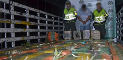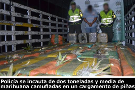 marihuana en piñasEn desarrollo del Plan Integral Policial para la Convivencia y Seguridad Ciudadana Corazón Verde + Plus, unidades policiales mediante acciones de registro y control en el sector el Guayabito, vía que comunica al municipio de Santa Rosa de Cabal, Risaralda se incautaron de dos toneladas y media de marihuana, que venían camufladas en un cargamento de piñas.