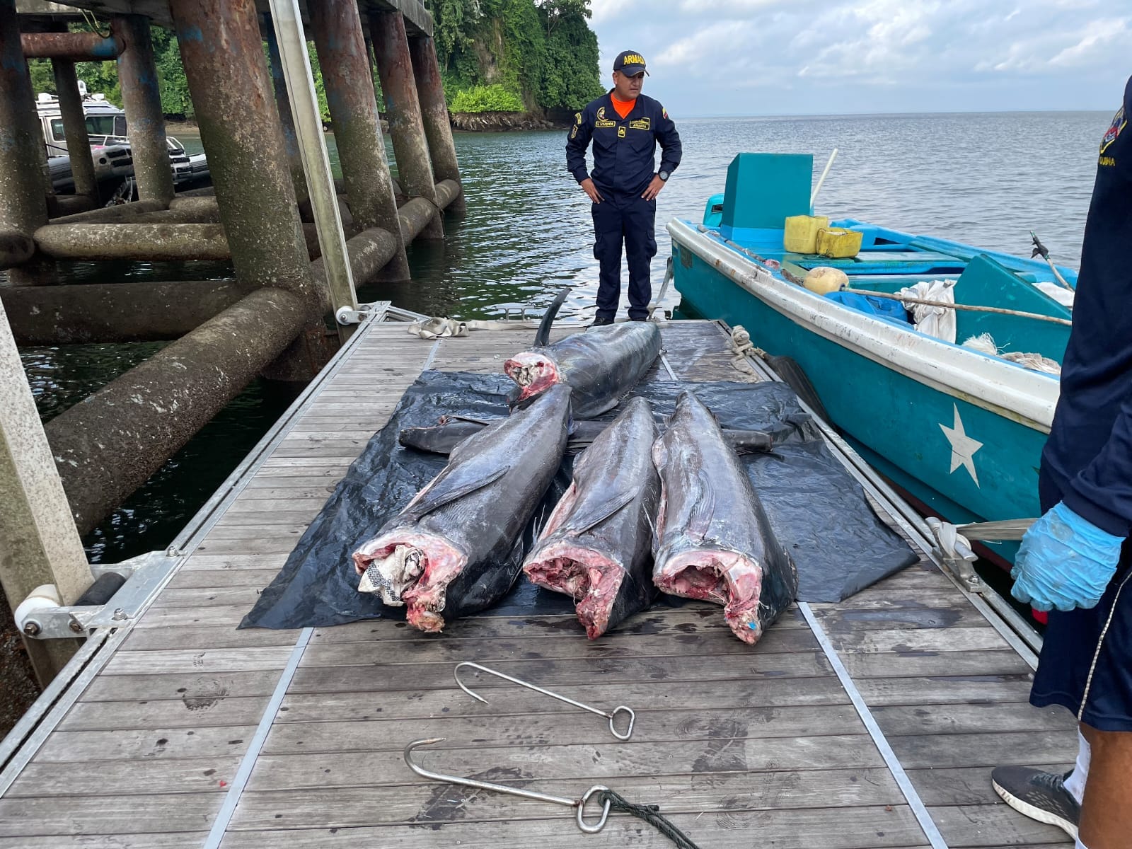 Durante la inspección de la embarcación los uniformados hallaron 738 kilogramos de pez dorado y marlín, especies que se encuentran protegidas por la Convención sobre el Comercio Internacional de Especies Amenazadas de Fauna y Flora Silvestres – CITES.