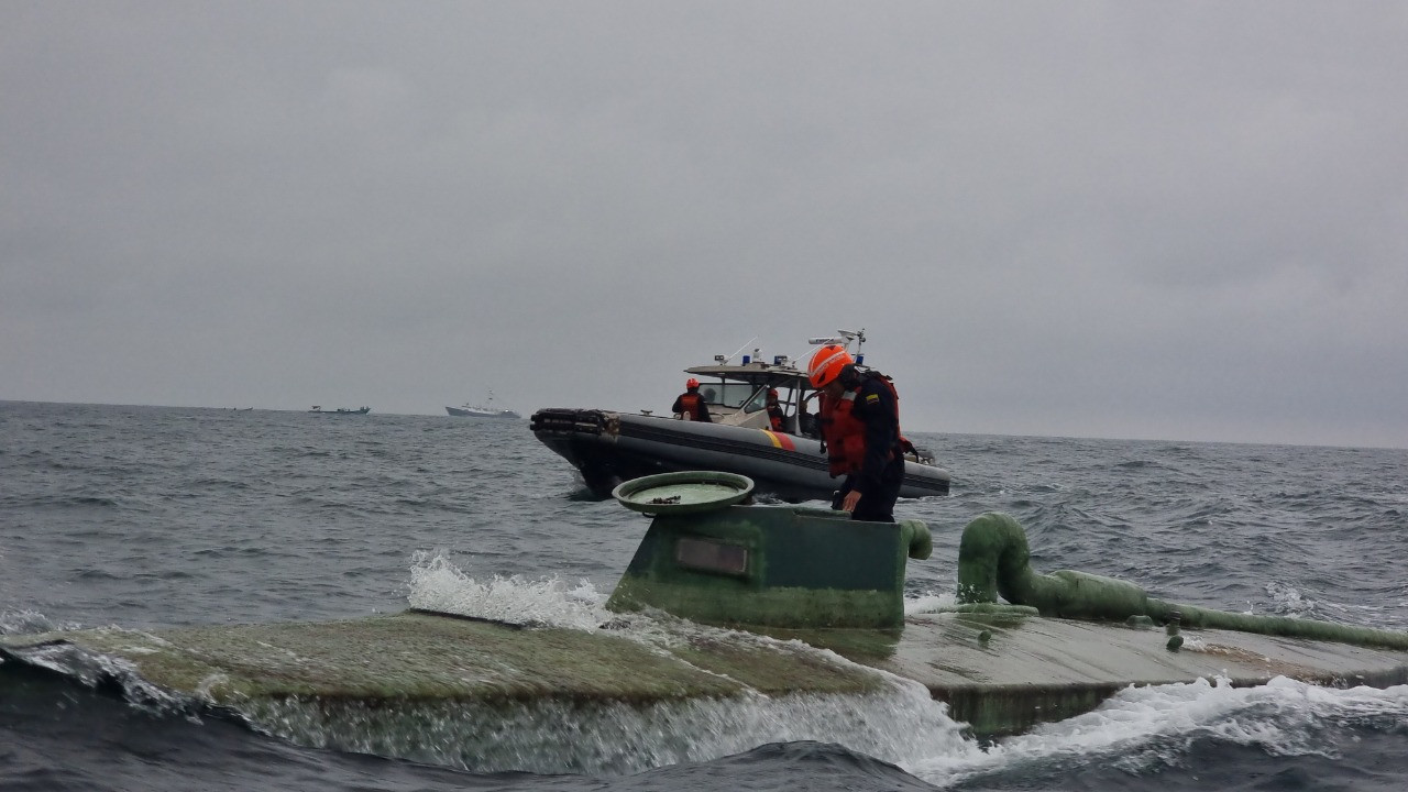 En medio de actividades de control realizadas en la noche, por unidades de la Estación de Guardacostas de Tumaco (Nariño), fue detectado un sumergible navegando a ‘flor de agua’, a 45 millas náuticas de la playa, transportando 3.1 toneladas de clorhidrato de cocaína.