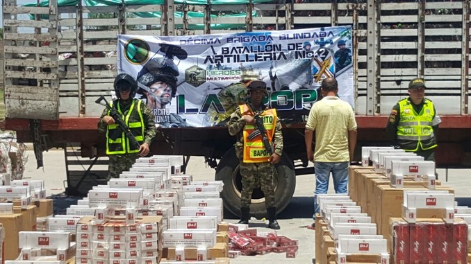 Tropas del Ejército Nacional del Batallón de Artillería No. 2 “La Popa”, incautaron en el Cesar 56 mil cajas de cigarrillos de contrabando.