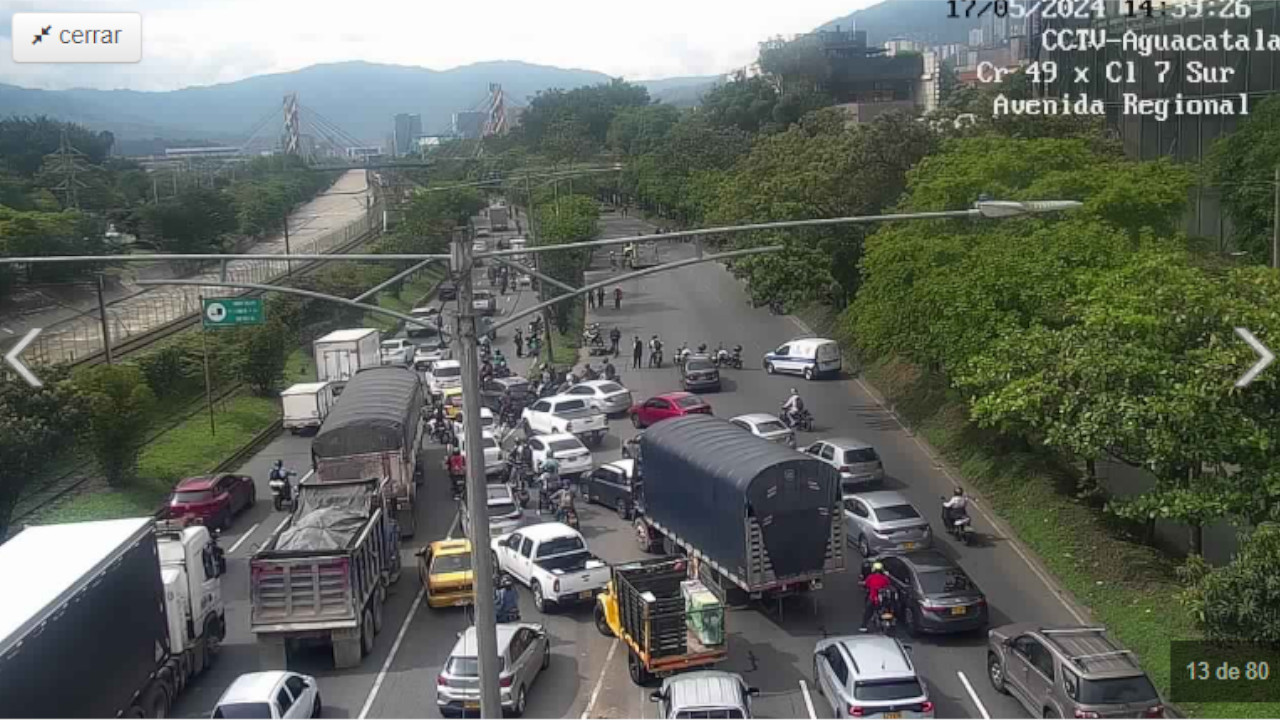 En la tarde de este viernes (17 de mayo) reportan novedad en la Autopista Sur cerca de la estación Aguacatala pero antes del puente de la 4 Sur, están desviando los carros.